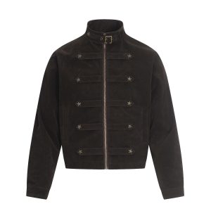Men’s Vintage Military Style Suede Jacket – Stand Collar Zip-Up Short Jacket for Fall & Winter