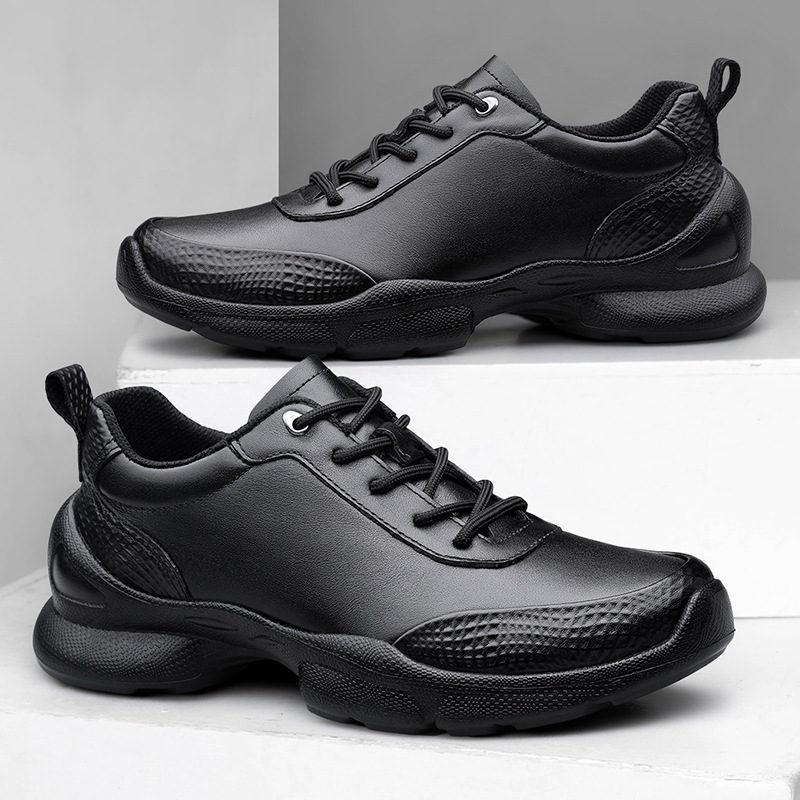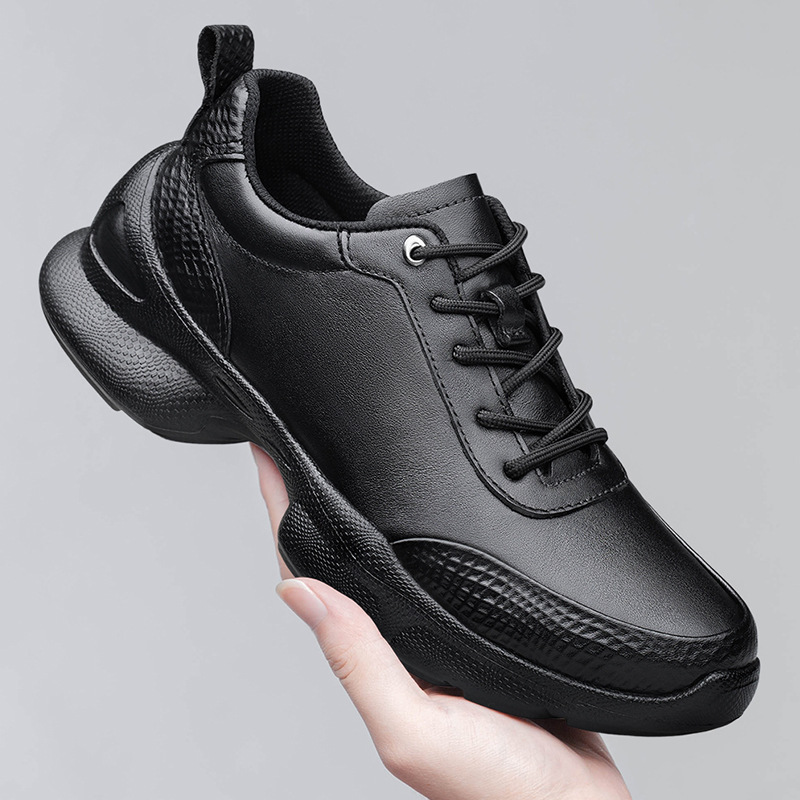 Men’s Black Lace-Up Casual Sneakers | Thick Sole Non-Slip Shoes | Comfortable Work & Walking Shoes Size 39–45