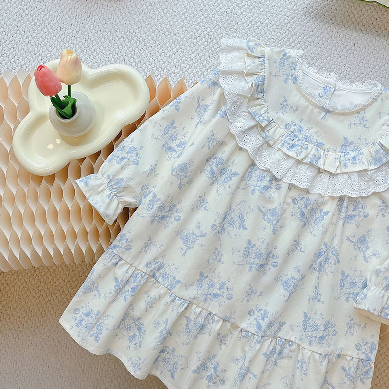 Baby Girl Floral Dress – Long Sleeve Cotton Dress with Ruffle Collar, French Style Princess Dress for Spring & Autumn