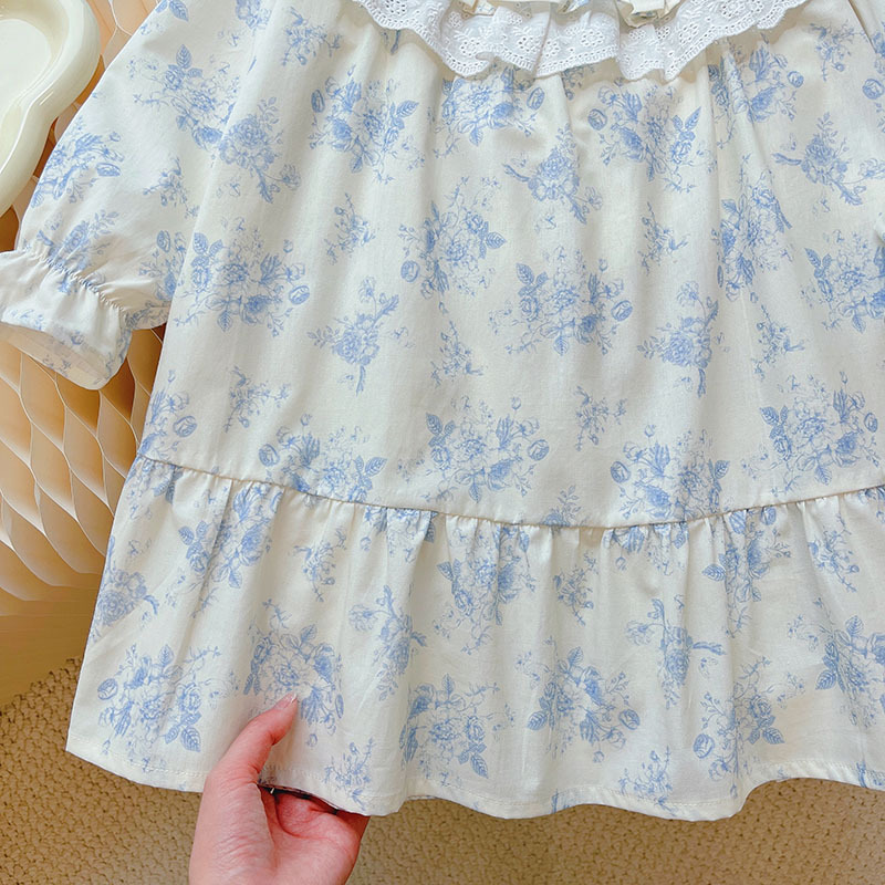• Double-layer ruffled collar with lace trim adds a charming French touch
