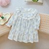 Baby Girl Floral Dress – Long Sleeve Cotton Dress with Ruffle Collar, French Style Princess Dress for Spring & Autumn
