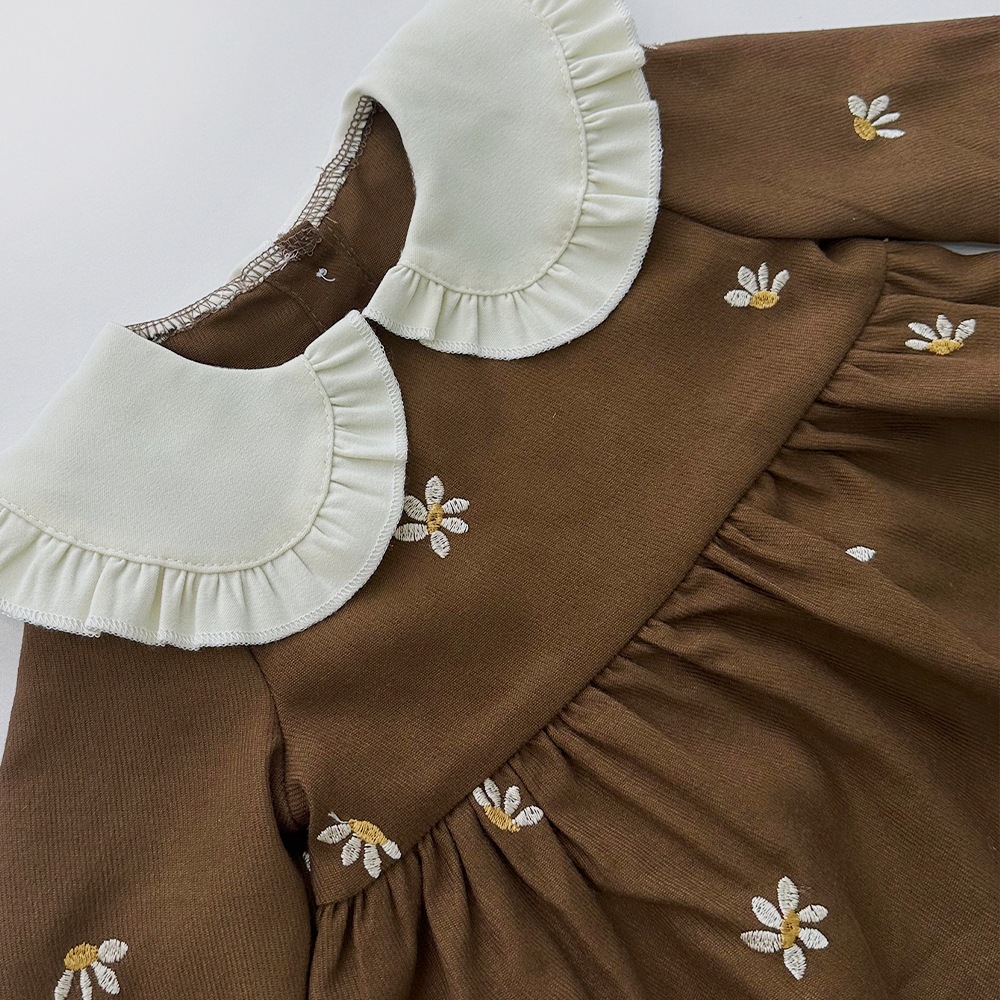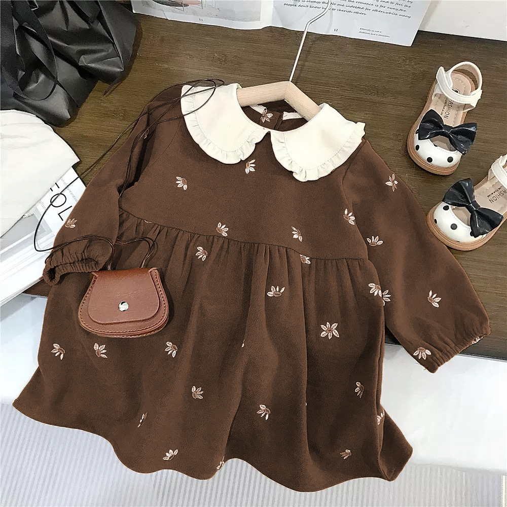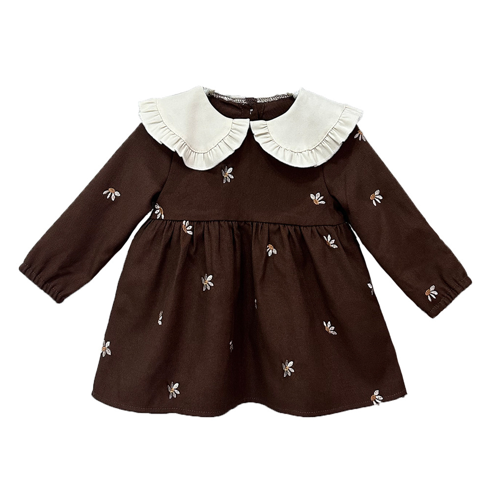 Baby Girl Long Sleeve Dress – Vintage Style Cotton Dress with Peter Pan Collar and Embroidery