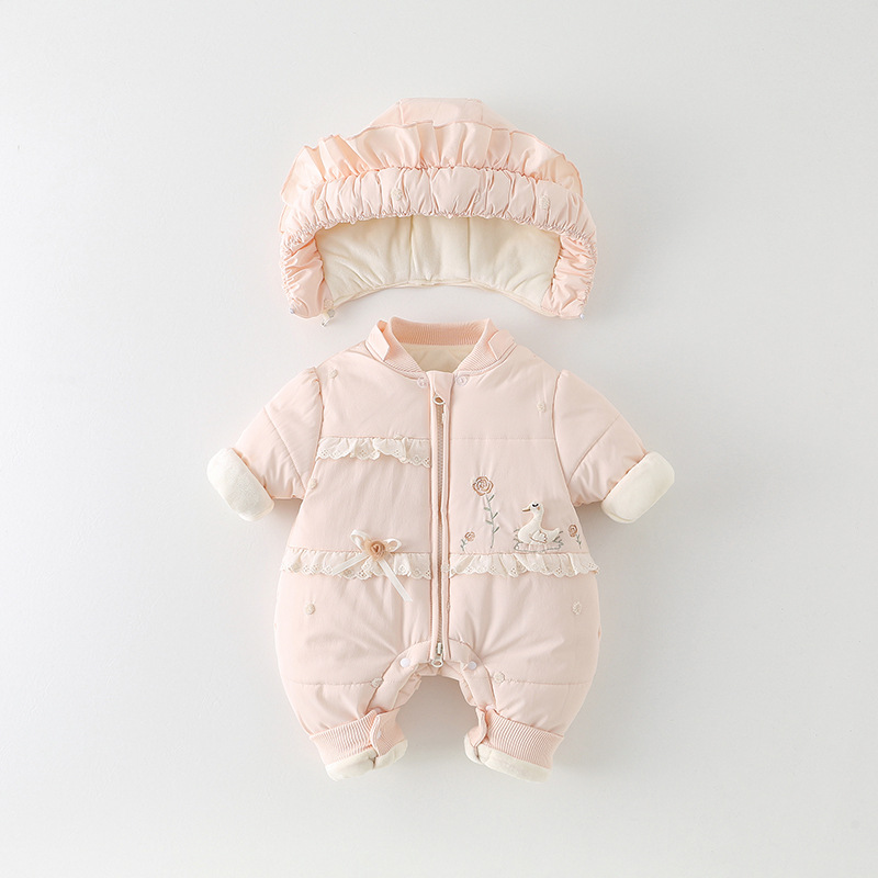 Product Name: Baby Girl Winter Quilted Romper Set (Romper + Hat)