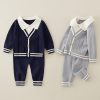 Baby Knitted Outfit Set – Classic Preppy Cardigan & Pants, Autumn Winter Two-Piece Set for Boys