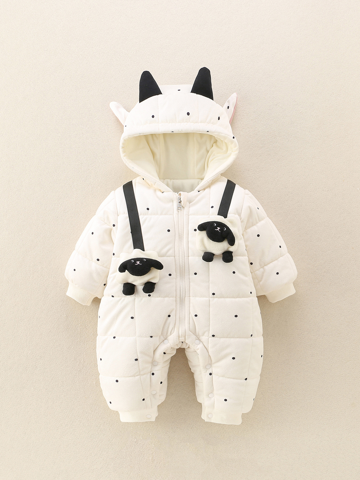Baby Winter Padded Snowsuit – Cute Lamb Hooded One-Piece, Warm Quilted Jumpsuit for Boys & Girls