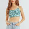 Blue Satin Scoop Neck Smocked Back Crop Top