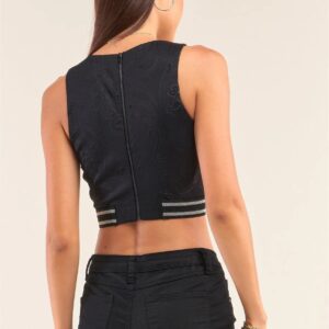 Black Sleeveless Embossed Jacquard Banded Crop Top