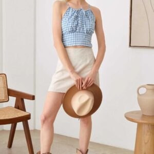 🖤 A this perfect crop top to your new season wardrobe featuring plaid print open back perfect for beach spring summer vacation streetwear.