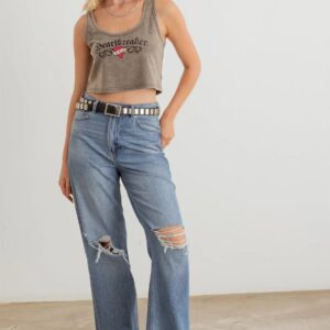 🖤 Item Features: Charcoal, printed, cotton material, round neckline, sleeveless, cropped length, non-stretchy, not see through, unlined, stylish, trendy, cool, must-have, lifestyle
