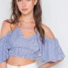 • Sky Blue & White Striped V-Neck Sleeveless Crop Top with Back Tie Detail Sky Blue & White Striped V-Neck Sleeveless Crop Top with Back Tie Detail $40.50