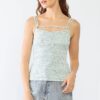 Cream & Green Scoop Neck Ribbed Strappy Top