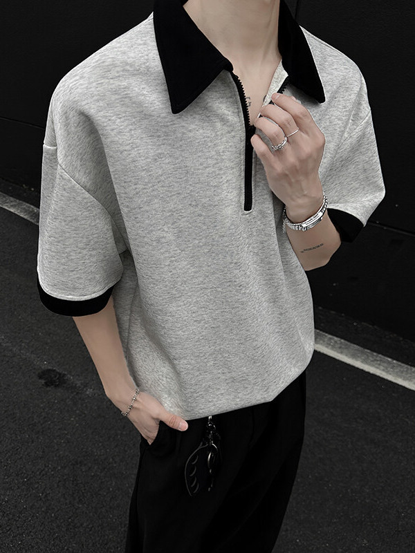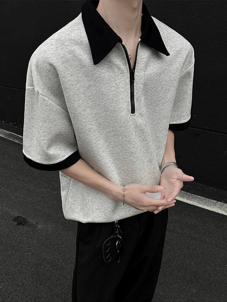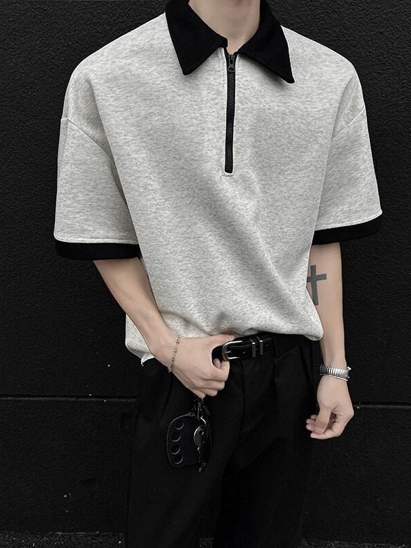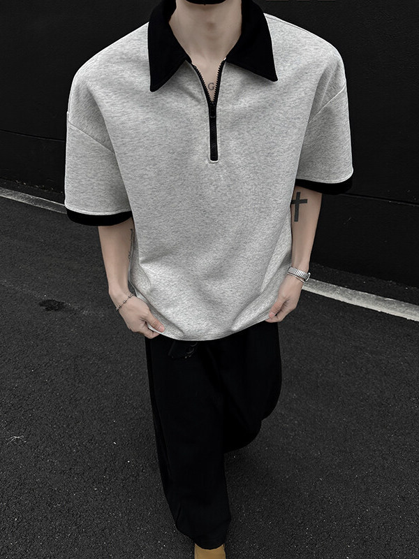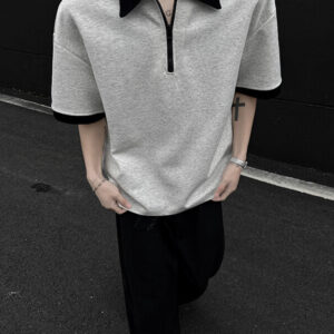 This short sleeve shirt combines classic shirt structure with casual styling, featuring a half-zip front that adds a modern and functional touch. The relaxed fit allows for easy movement and comfortable wear, making it suitable for everyday outfits, workwear, or street-style looks.
