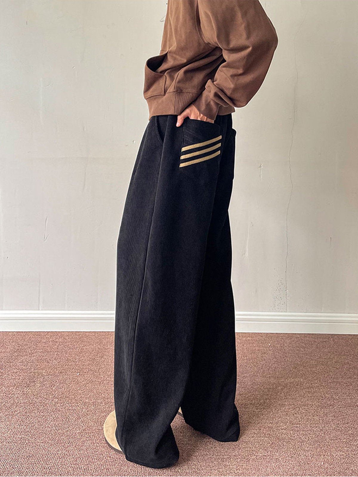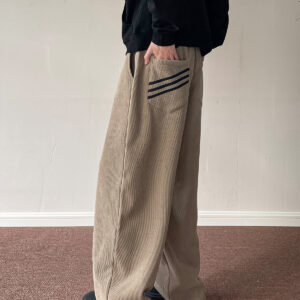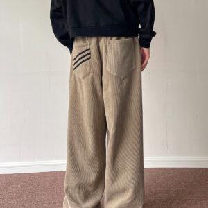 These unisex corduroy pants are designed with a relaxed wide-leg straight fit, offering both comfort and a strong vintage-inspired look. Made from soft corduroy fabric, they provide warmth and texture, making them perfect for fall and winter styling.