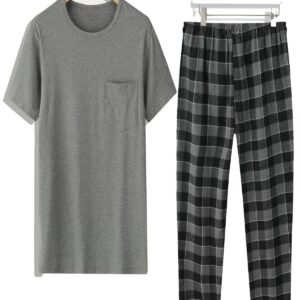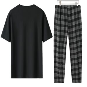 Men’s Pajama Set|Short Sleeve T-Shirt with Pocket & Plaid Pants|Relaxed Fit|Two Color Options