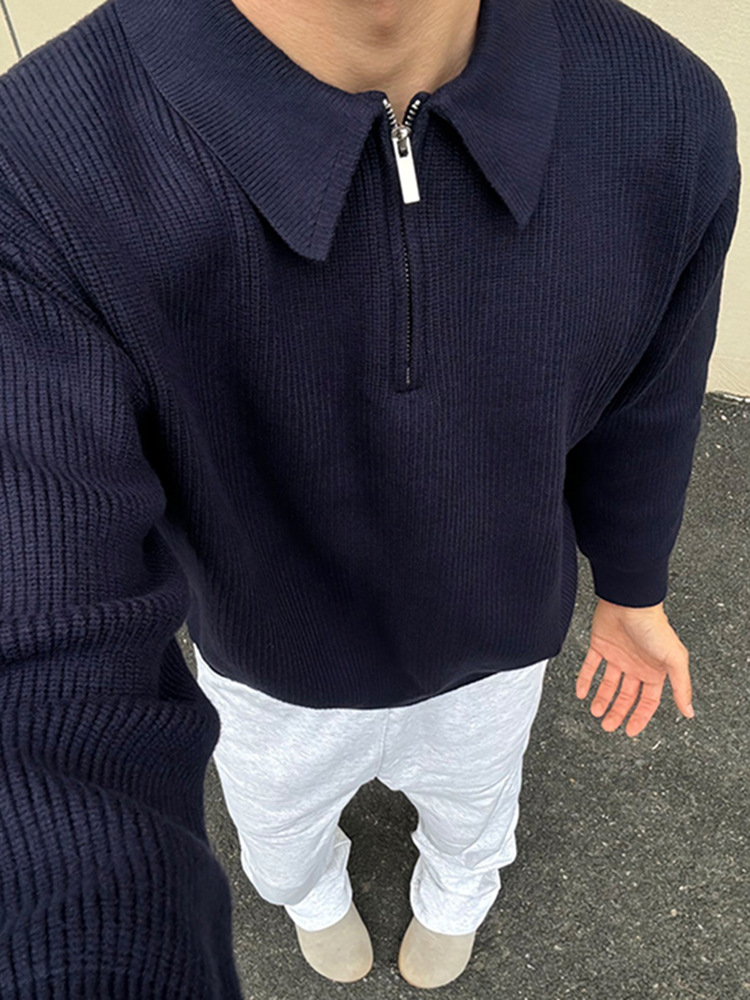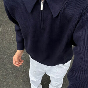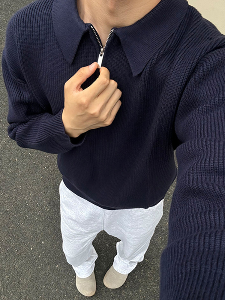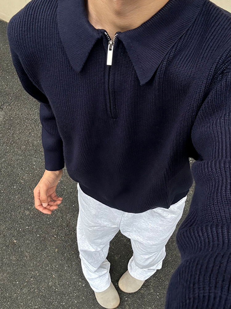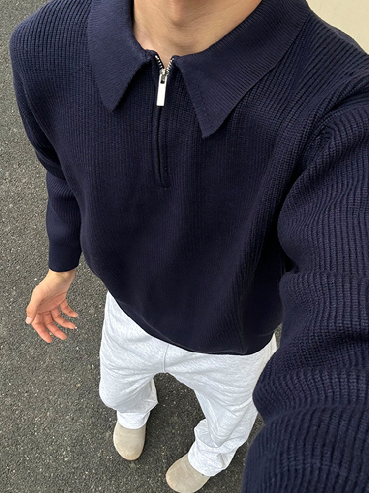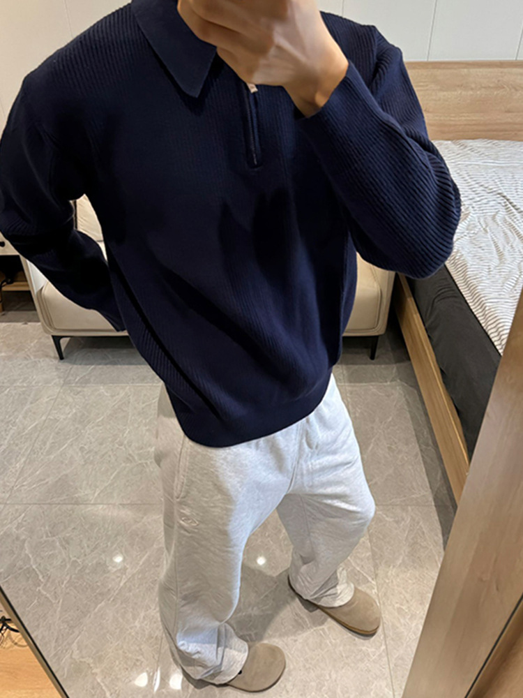 Designed with a classic polo collar and half-zip closure, it blends casual comfort with a polished silhouette, making it suitable for daily wear, work, and smart-casual occasions.