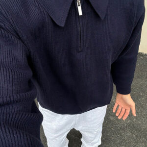 Be the first to review “Navy Knit Polo Shirt with Half Zip | Textured Rib Knit | Relaxed Fit” Cancel reply