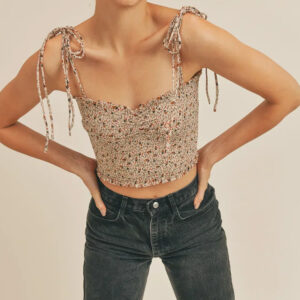Be the first to review “Floral Print Smocked Tie-Strap Crop Top” Cancel reply