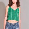 Green & White Striped V-Neck Sleeveless Crop Top with Button-Down Front