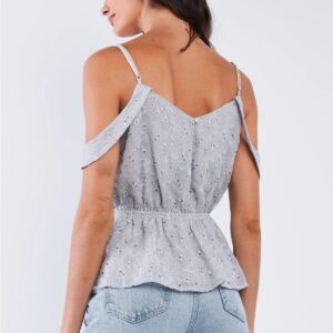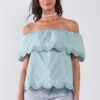 Dusty Blue Floral Crochet V-Neck Front Wrap Top with Adjustable Off-Shoulder Straps