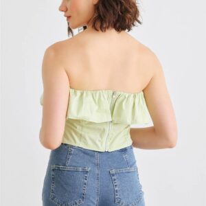 Light Green Cotton Strapless Flared Corset Tube Crop Top