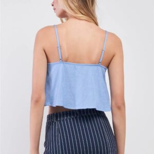 Baby Blue Sleeveless V-Neck Button Crop Cami