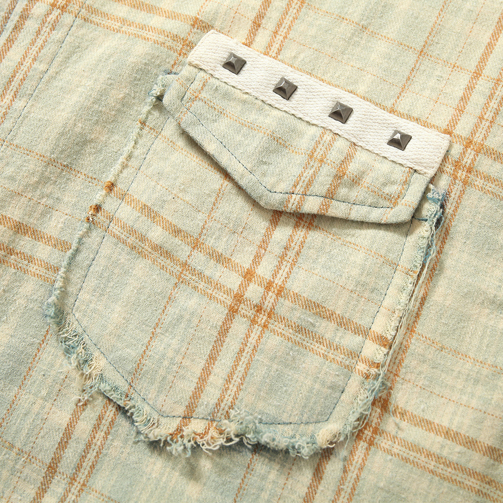 Unisex Gradient Plaid Shirt | Vintage Distressed Design | Raw Edge Details | Relaxed Fit | American Workwear Style