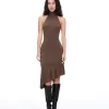 Vintage Mocha Brown Halter Backless Asymmetrical Hem Bodycon Dress