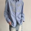 Pearl Letter Embroidered Relaxed Shirt | Long Sleeve Shirt