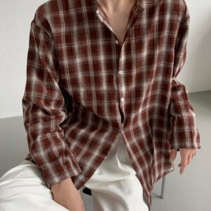 Be the first to review “Vintage Plaid Stand Collar Shirt | Relaxed Long Sleeve Shirt” Cancel reply