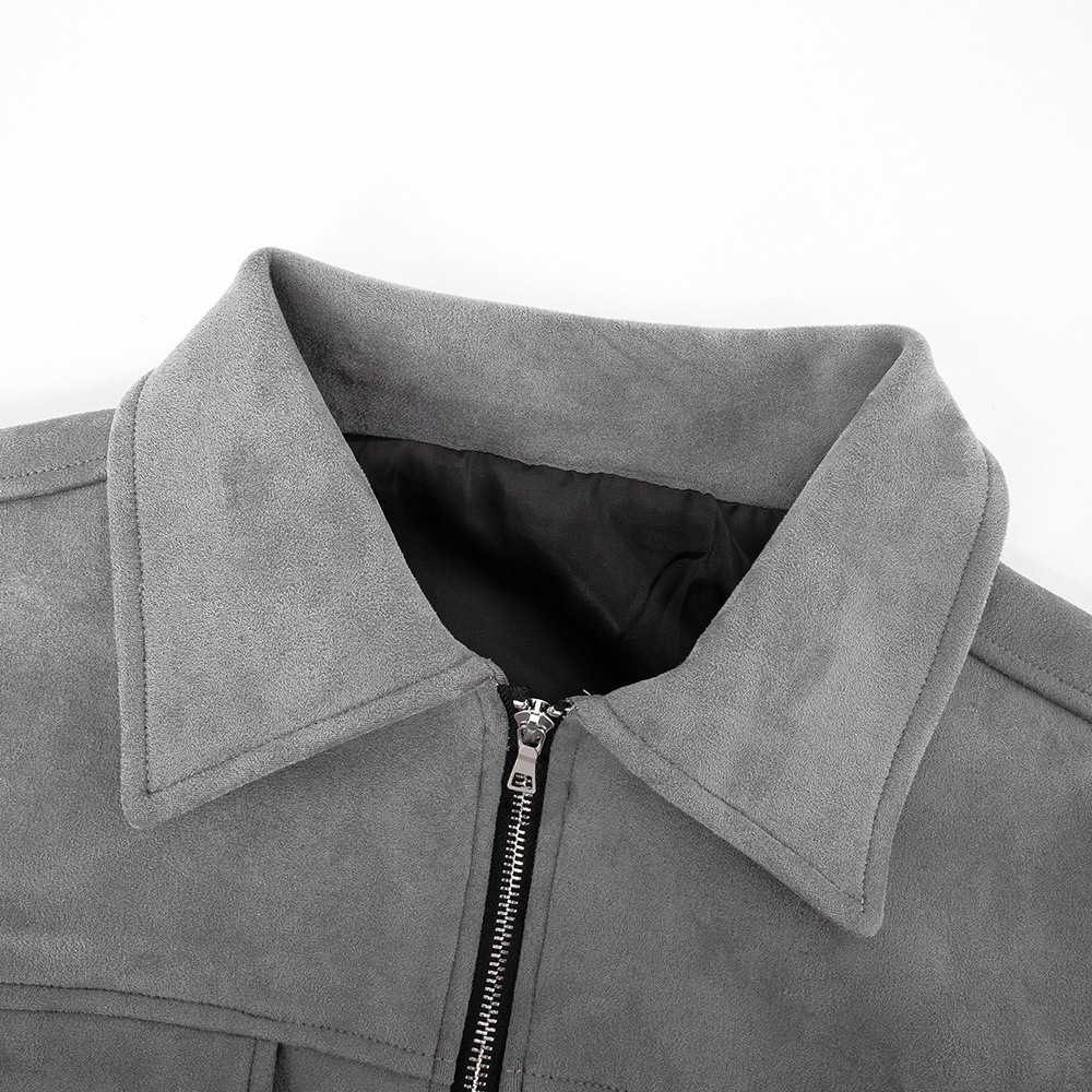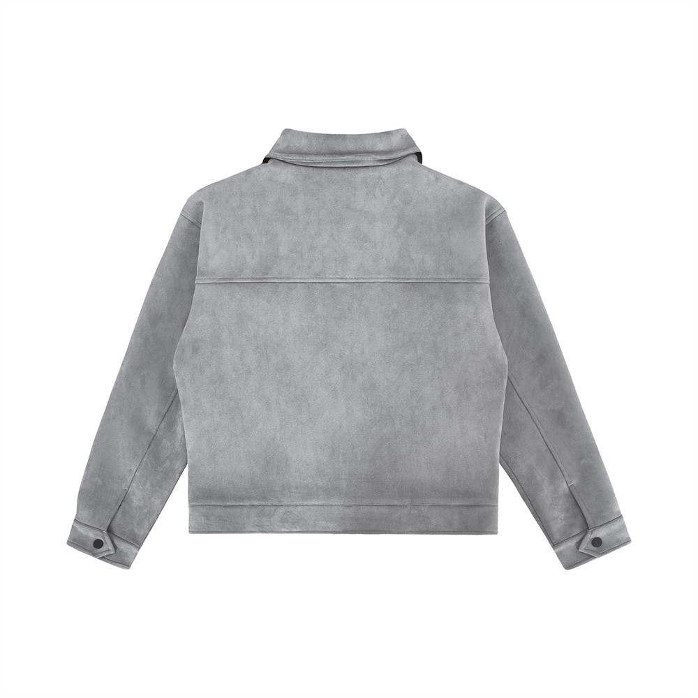 This shirt-style jacket is crafted from a soft suede-like fabric, delivering a refined vintage workwear aesthetic. The texture is smooth and comfortable while maintaining structure, making it easy to wear and style.