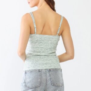 Cream & Green Scoop Neck Ribbed Strappy Top