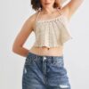 Mustard & Lilac Tie-Dye Crochet Hem V-Neck Crop Cami