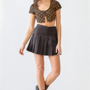 Be the first to review “Tan & Black Diamond Print Button Short Sleeve Crop Top” Cancel reply