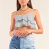Blue Satin Scoop Neck Smocked Back Crop Top