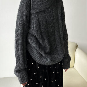 With its warm knit texture and minimalist aesthetic, this sweater is perfect for fall and winter styling, pairing easily with skirts, trousers, or boots for everyday wear.