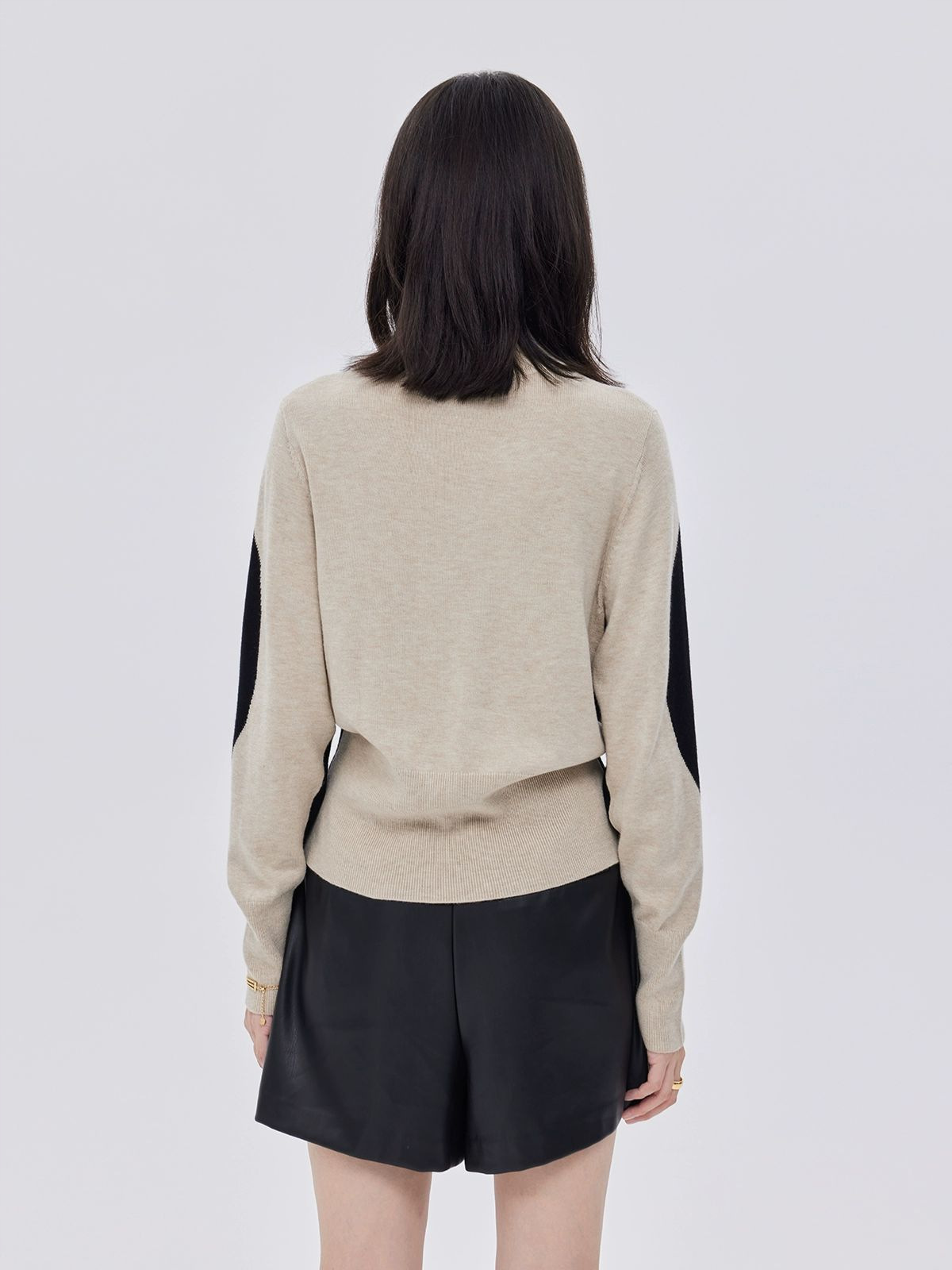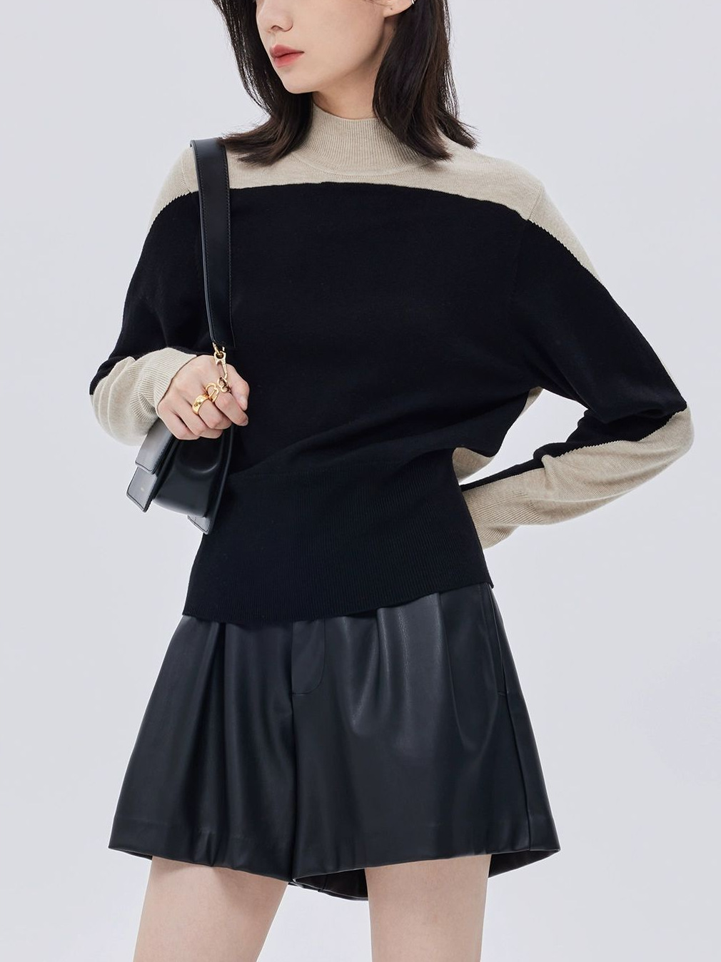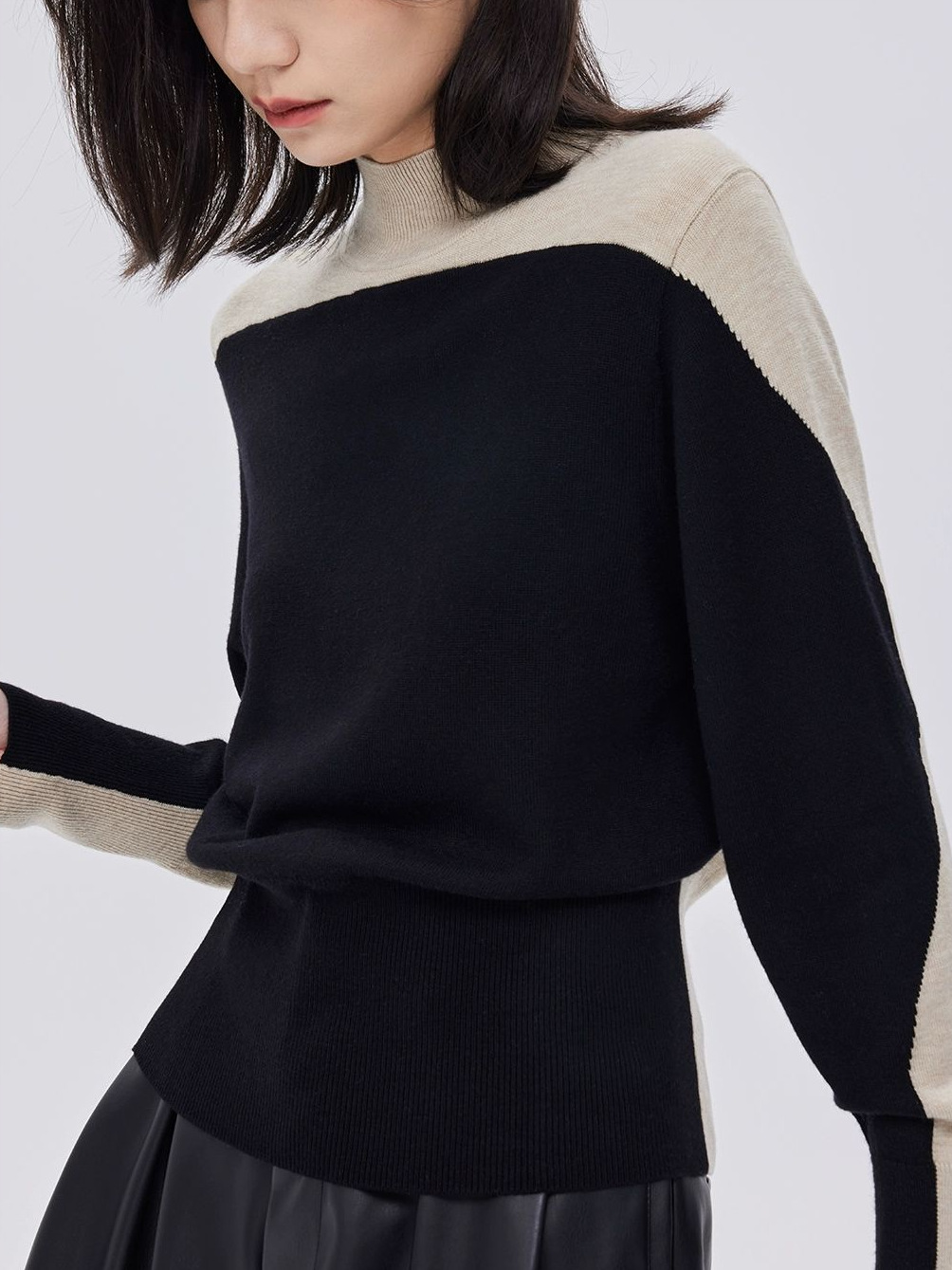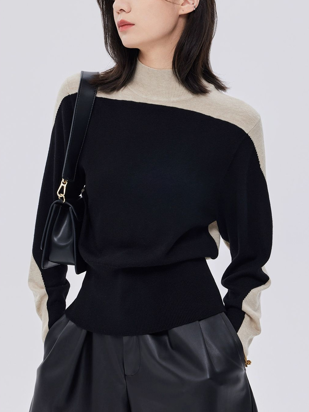 Women’s Color Block Knit Sweater | Mock Neck | Slim Fit | Minimal Elegant Style | Everyday Wear
