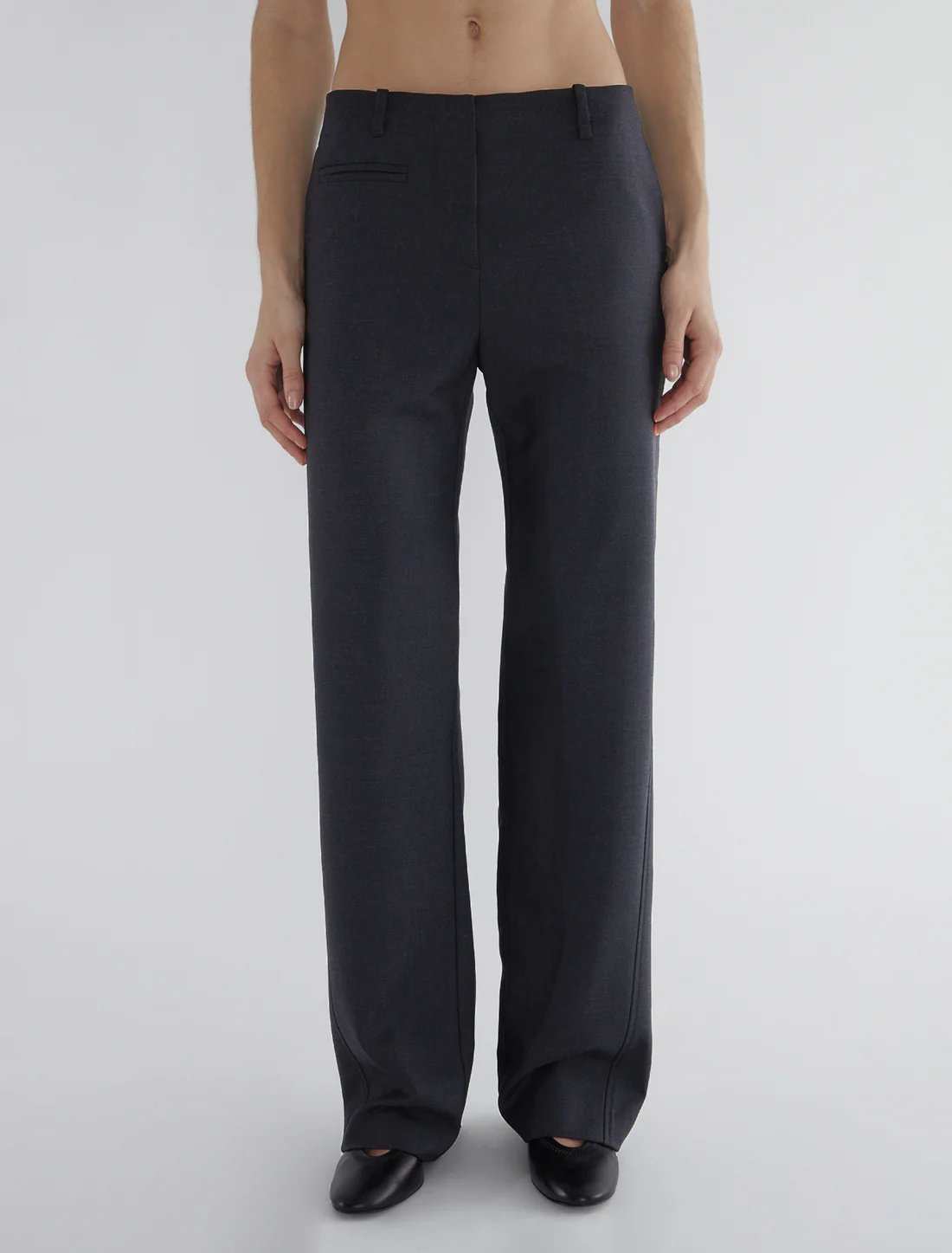 Made from premium suiting fabric with excellent drape, these trousers fall smoothly without clinging to the legs and resist wrinkling throughout the day. The minimalist design, paired with subtle pocket detailing, makes them suitable for professional settings as well as everyday styling.