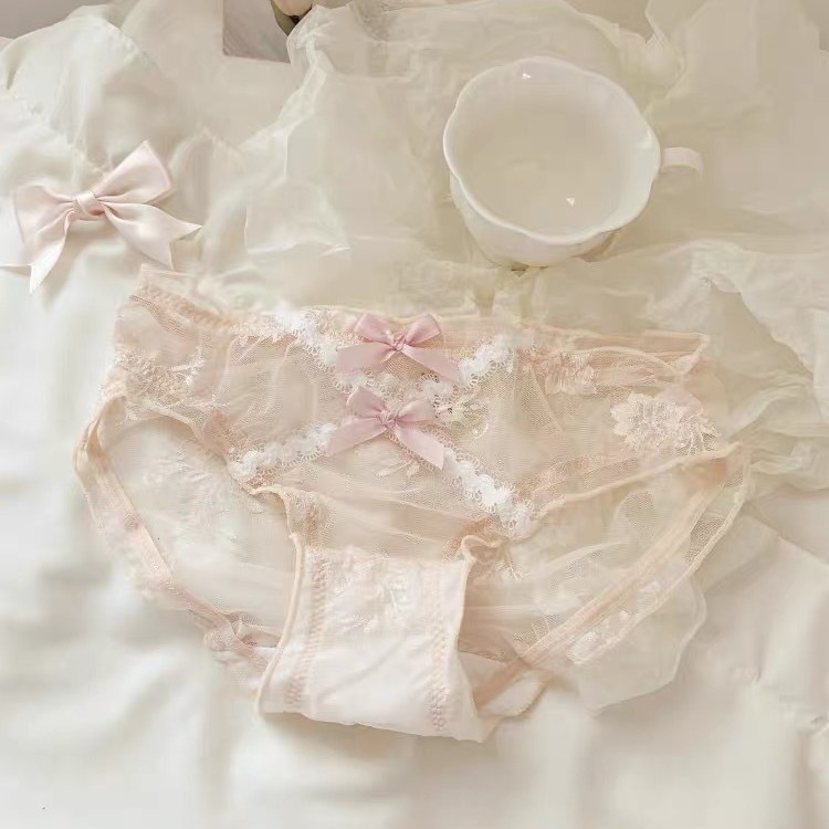Women’s Lace Mesh Briefs | Sheer & Lightweight | Bow Detail | Mid-Waist Fit | Sweet & Delicate Style